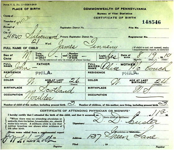 End of Table: Joseph R. Tinneny son of James J. Tinneny Sr. |