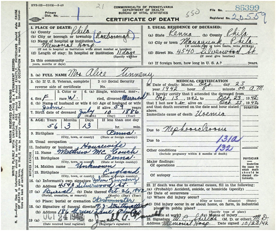 15th at their home on Silverwood Street. John was 25 years old Alice