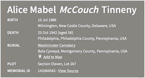 brother and sister-in-law Matthew and Elizabeth McGooch. Alice was buried