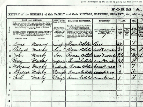 Photo: Partial 1901 Census of Ireland Form showing Mary and
