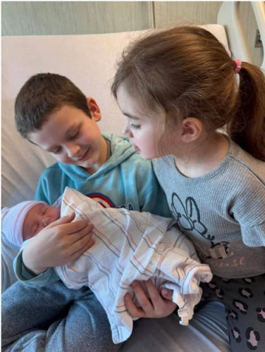 Her brother John and sister Peyton are delighted.
