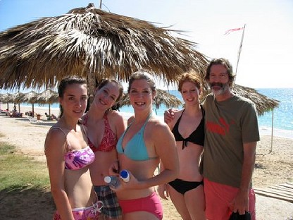 Rose, Laura, Charlotte enjoying Ancon beach with their Dad John.