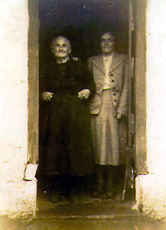 Mary Ann Tinneny and daughter Alice in doorway of homeplace in mid 1900s.