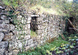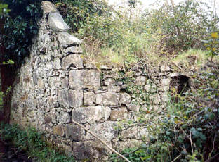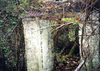 THE HOMEPLACE Mary Ann, widow of Big John Tinneny's son James in front of homeplace. The only know picture of the homeplace when it was lived in. Mary Ann Tinneny and daughter Alice in doorway of homeplace in mid 1900s. Photos courtesy of Mary McGarvey. End view, 1992 .Front Door, 1992 .Side View Towards Front Door 1992 Old pot and bottles in yard 1992. Turnstile to which mule was tethered to drive shaft that churned butter inside the house
