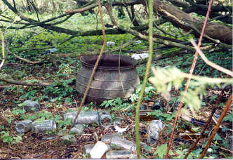Old pot and bottles in yard 1992.